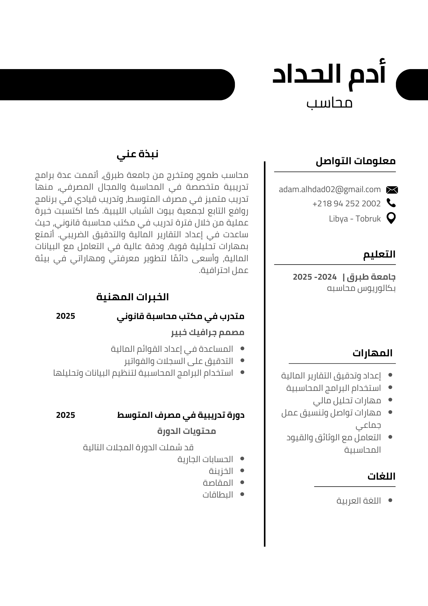 خدمات / وظائف ادم عبدالقادر الحداد