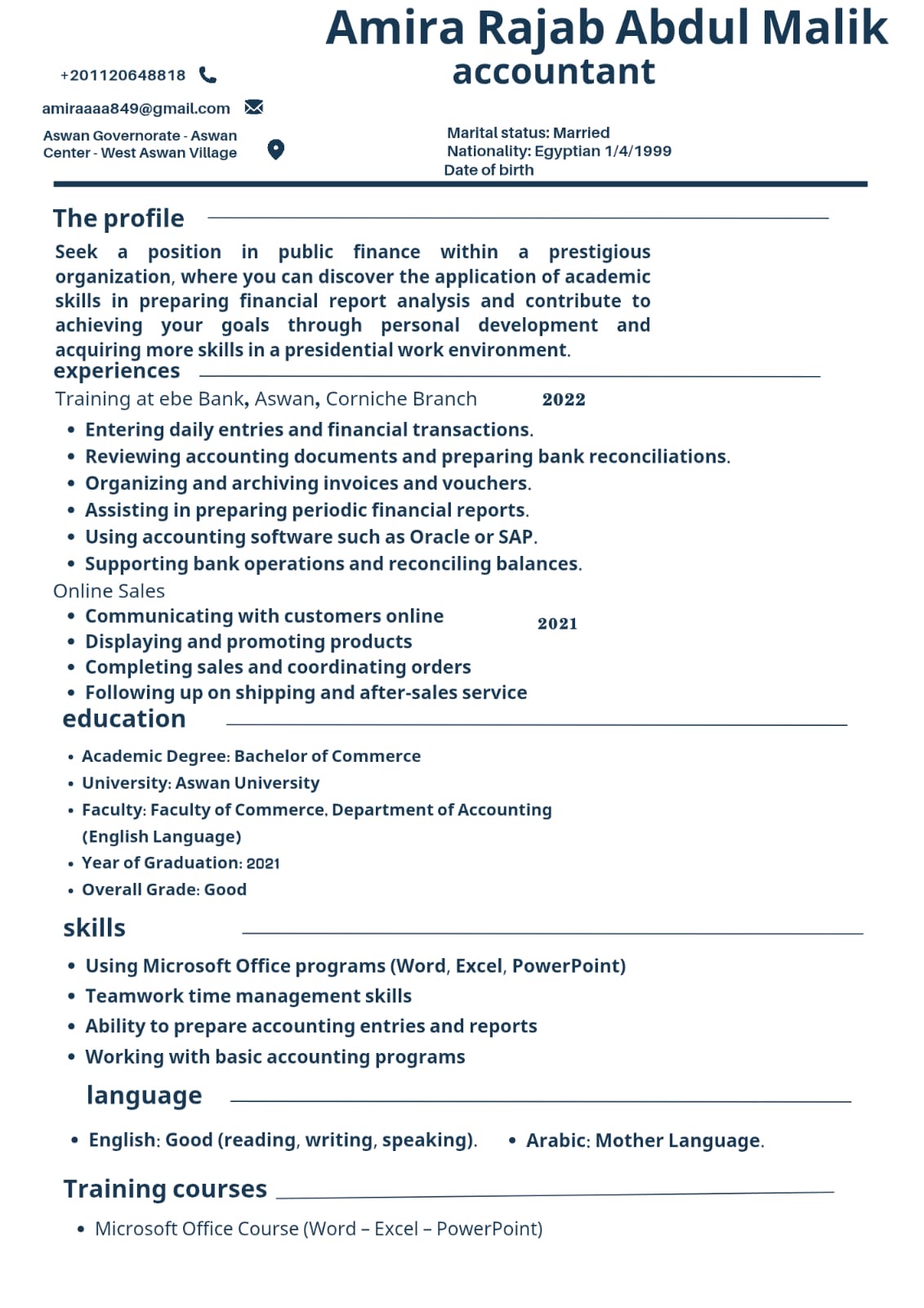 خدمات / وظائف اميرة رجب عبد الملك