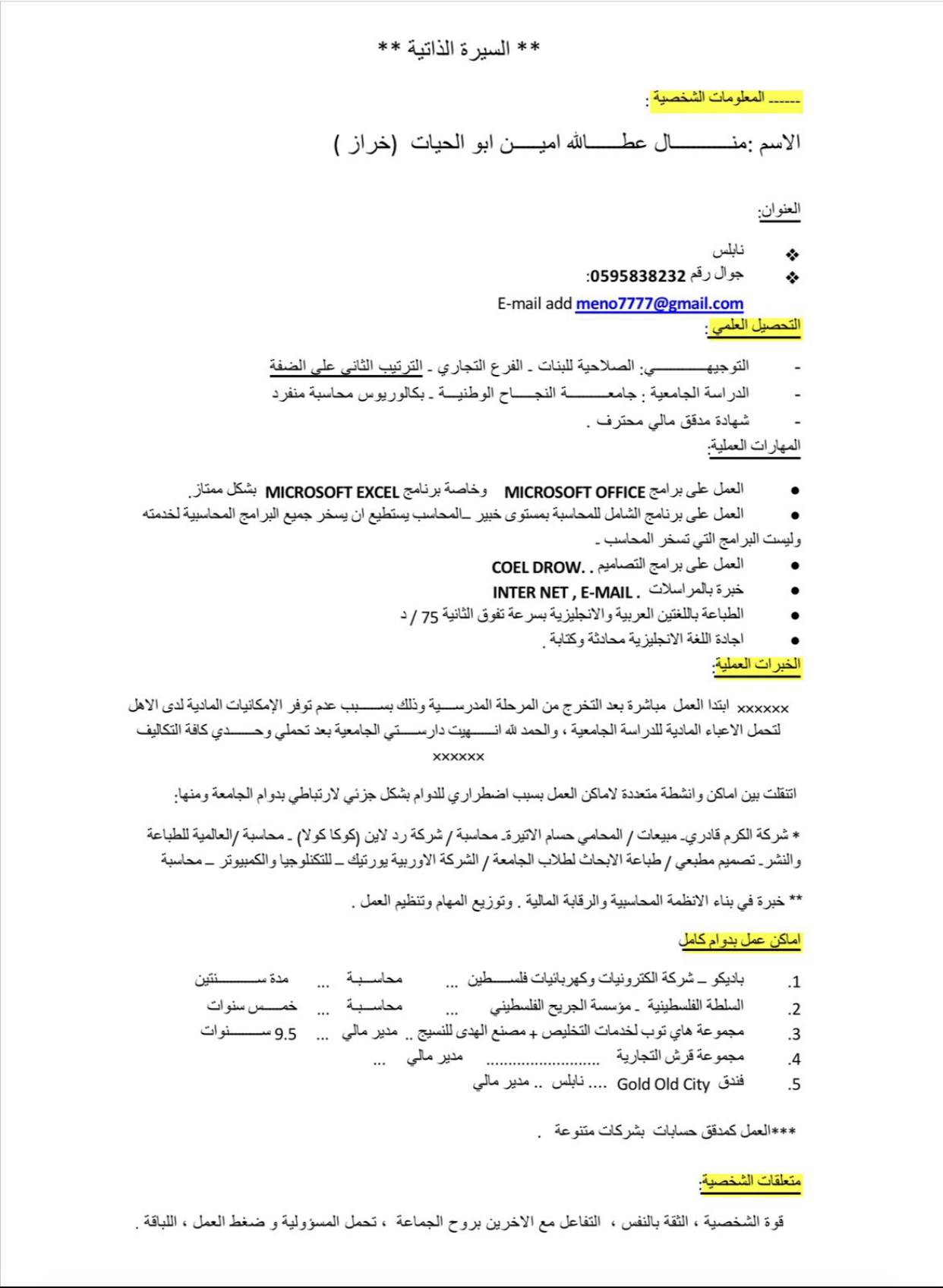 السيرة الذاتية