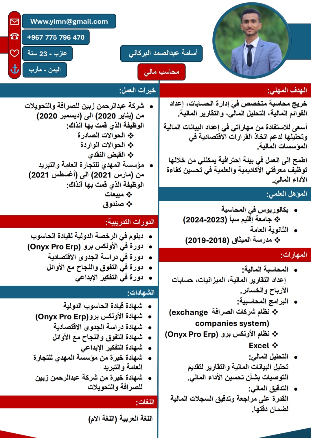 محاسب مالي ذو خبرة في إعداد وتحليل التقارير المالية، وإدارة الميزانيات، والتخطيط المالي الاستراتيجي.