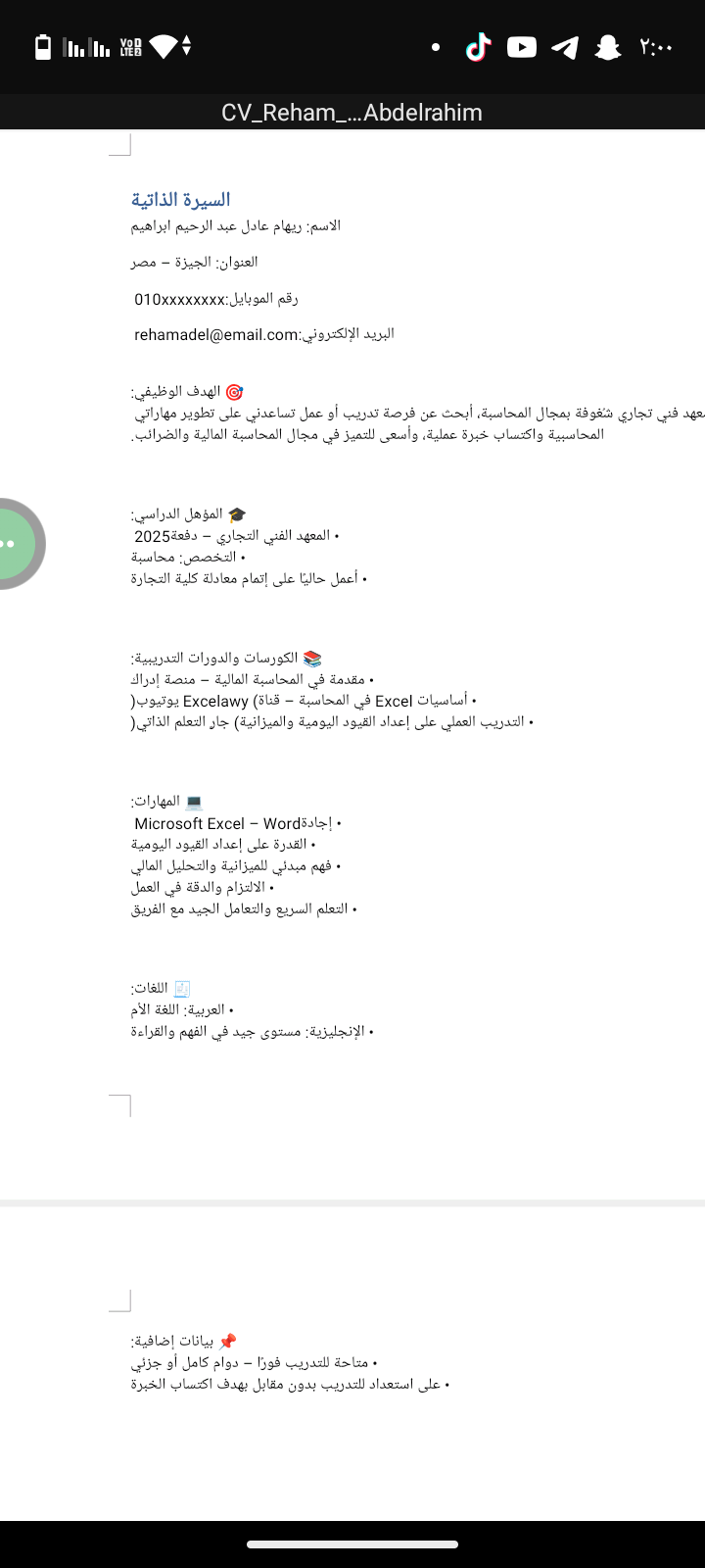 خدمات / وظائف ريهام عادل